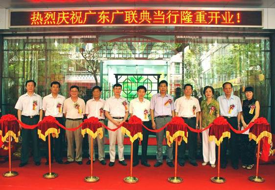 經過多方的籌備,廣東廣聯典當行有限公司在2009年7月15日隆重開業. 參加開業典禮的嘉賓有:廣東省商業企業集團公司董事長、黨委書記鄭雄先生,廣東省典當行業協會會長吳菊生先生,浙江電聯集團有限公司總裁樊順光先生,廣東廣聯典當行有限公司股東代表、董事長,浙江電聯集團有限公司常務副總裁宋曉剛先生,廣東廣聯典當行有限公司股東代表、董事,廣東華友拍賣行有限公司董事長、總經理林朝暉女士,廣東省國資委派駐省商業企業集團公司監事會主席陳俊海先生,廣東省經濟貿易委員會流通服務處處長譚疊先生,廣東省酒類專賣管理局副局長朱思旭先生,廣東省經濟貿易委員會流通服務處副處長吳東先生,廣東省商業企業集團公司董事、黨委副書記、紀委書記、工會主席楊淑儀女士及省商業企業集團公司的主要領導、科室負責人和直屬公司總經理等共三十余人。 開業典禮上廣聯典當行總經理朱懿娟女士介紹了廣東廣聯典當行有限公司的基本情況,廣東省典當行業協會會長吳菊生先生和浙江電聯集團有限公司總裁樊順光先生也發表了重要講話。隨后由省商黃龍副總、朱福贊副總,浙江電聯樊董,省典協吳會長為醒獅點睛,此時雄獅起舞,預示著廣聯典當行業務蒸蒸日上! 省商楊淑儀書記、省商熊元勛副總,浙江電聯樊董、廣聯宋曉剛董事長,華友拍賣行林朝暉董事長,省典協吳會長共同為廣聯公司剪彩。省商周凱總經理、廣聯宋董、華友林董、省典協吳會長為廣聯典當行進行揭牌儀式,就此廣聯典當行經過將近兩年的籌備后正式開業! 最后各主要領導和廣聯典當行全體員工合影留念,廣東省典當行業從此增加了一個生力軍,廣聯典當行也將從此刻開始逐步壯大、蓬勃發展!