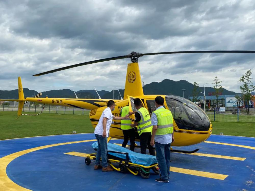 飛機(jī)落地后,救護(hù)人員快速將乘客抬上救護(hù)車送醫(yī)